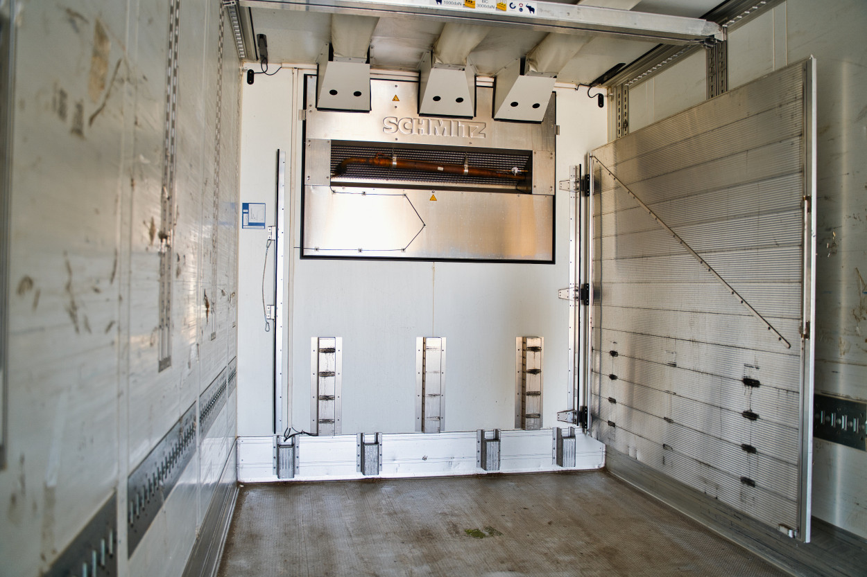 - Ladungssicherungs-Schienen im Aufbau rechts und links